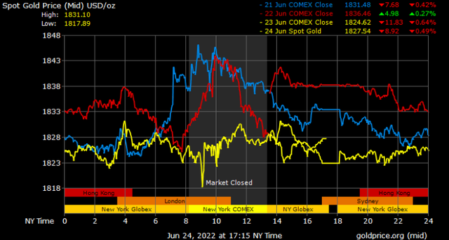 Phillip Streible, Trưởng phòng chiến lược thị trường tại Blue Line Futures, cho biết lập trường mạnh tay thắt chặt tiền tệ của Cục Dự trữ Liên bang đang đè nặng lên tâm lý của các nhà đầu tư bán lẻ. Tuy nhiên, ông nói thêm rằng, nếu nền kinh tế Mỹ rơi vào suy thoái, ngân hàng trung ương Mỹ sẽ buộc phải đảo ngược một số đợt tăng lãi suất, điều này sẽ châm ngòi cho đợt tăng giá tiếp theo của vàng.